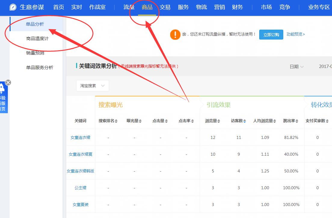3、首先店铺要有基础人气