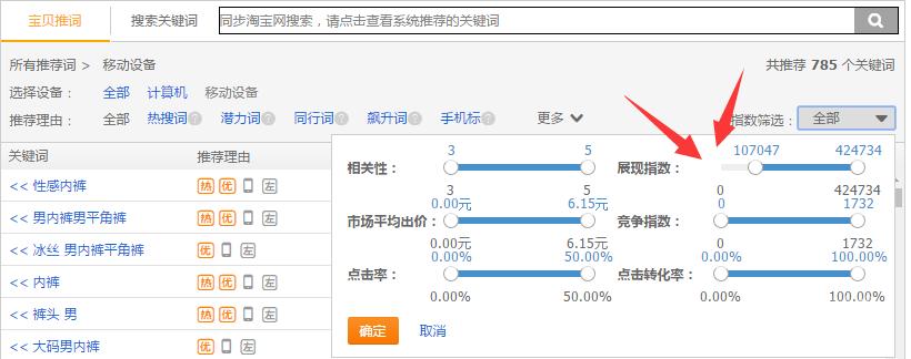 【潜】:这里指的是有一定展现量且市场平均出价或者竞争指数比较低的关键词 ;